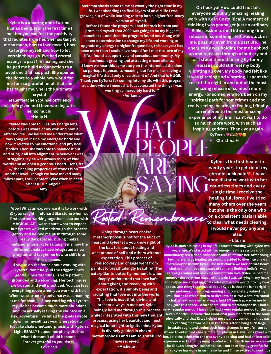 🦋And… you will forever know that you were apart of activating Chakra Metamorphosis in the world, for the world. You will leave with a story of transformation to tell. You will know that your unique gifts and presence helped heal others. You will remember your magic!! 🦋